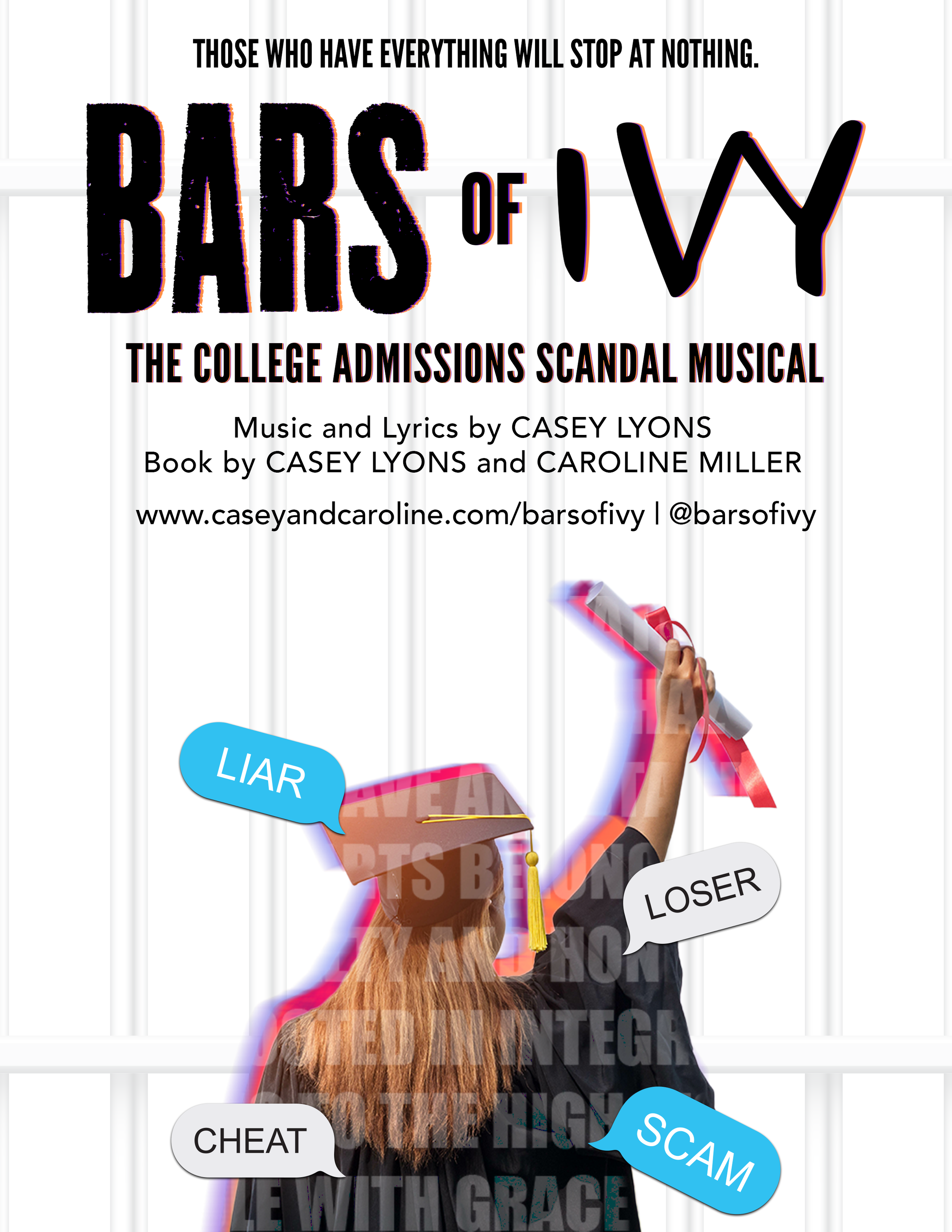 This fresh take on the 2019 college admissions scandal follows Ivy McKenna, a high school senior who is forced to deal with the consequences of a lie she didn’t tell. A coming-of-age story for both adolescents and adults, the musical examines how belief in someone can change lives, and societal “success” isn’t always what it’s cracked up to be.